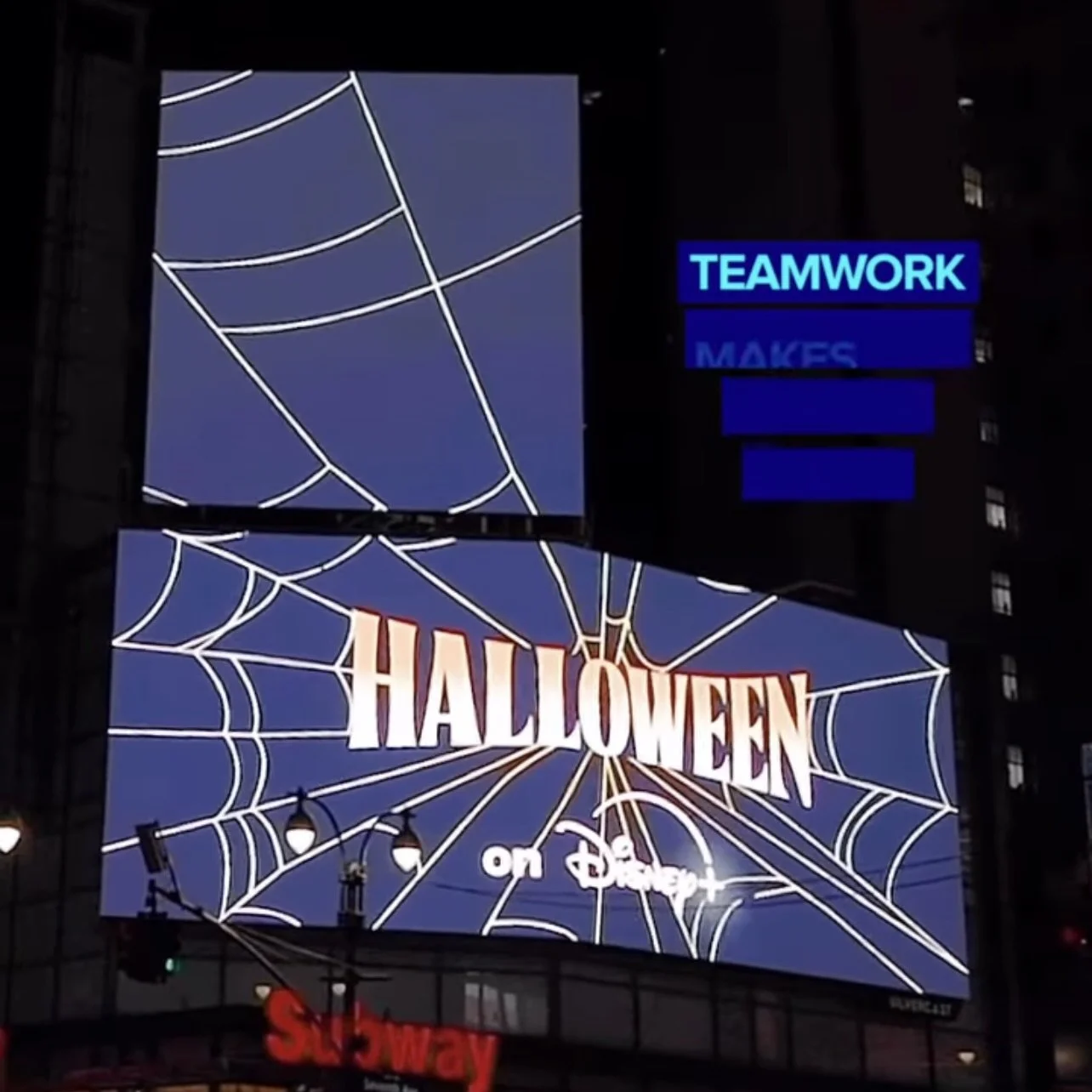 For Disney+ and Hulu’s Halloween promotion, our team created a series of digital out-of-home ads shown on massive screens across the country, including Times Square, Penn Station, JFK Airport, and The Grove.
